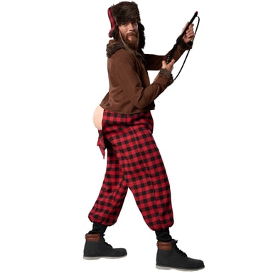 Herrekostymet «Bondeknøl» består av en ermeløs og ryggløs drakt i rutemønster av et fast stoff. Nederst på buksene er det sydd på hæler av fløyel. På kragen er det festet en borrelås.Les mer om produktet