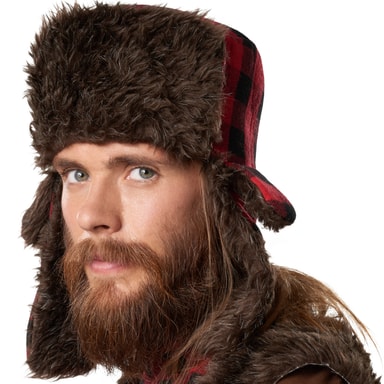 • Tykk lue med rutemønster og innlegg av uekte pels