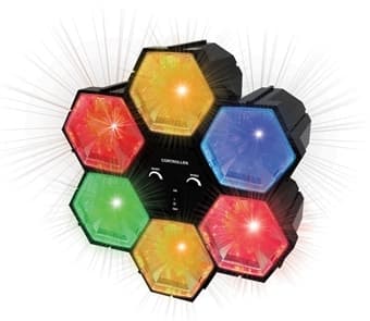 Seks stykker lampemoduler med LED lamper forgyller ditt disco / party / festen med herlige lyseffekter som blinker i takt med musikken. Musikkfølsomhet for den interne mikrofonen Turtallsregulering av sirkulerende lys Lyssetting for disco fantasten LED lyseffekt med 6 diskolamper i 6 ulike farger. Størrelse: 255 x255 x83mm. Meget effektfull og oppskattet. Lyseffekt bestående av lyssterke, fargede LED lamper som blinker i alle mulige ulike mønstre og konfigurasjoner. Meget lav energiforbruk takket være LED-teknikk Drives med 230V, AC-adapter inngår. Fargesprakende lys-sterk effekt Innebygd mikrofon for musikkstyring, kontroller for følsomhet og hastighet. 6 ledlamper, justerbare i hastighet, kontrolleres av den innebygde mikrofonen.