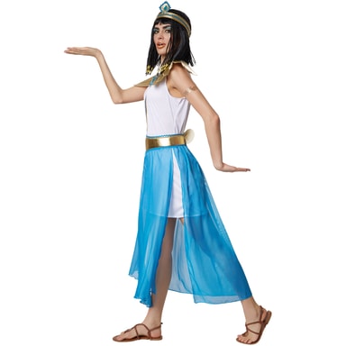 Kvinnen kostymen forførende farao hatshepsut er i hvitt, blått og gull og består av topp, skjørt og hårbånd. Den ermeløse overdelen er veldig lang, slik at underdelen også fungerer som underskjørt.Les mer om produktet