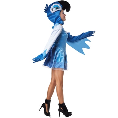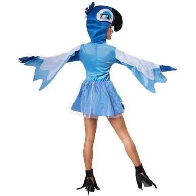 Damekostymet morsom paradisfugl er av plysj og består av en kort kjole, en lue samt lange strømper formet som klør. Den korte kjolen med borrelås i nakken er formet med flere ulike blånyanser. Kragen har en hvit påsats med sikksakkmønster.Les mer om produktet