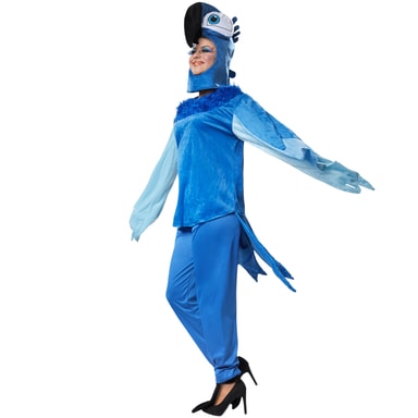 Unisexkostymet praktfull Blåara består av en overdel, en bukse, en papegøyelue samt strømper formet som klør. Overdelen med borrelås i nakken er utformet i plysj med flere ulike blånyanser. Kragen har en mørkeblå kunstig pels. Ermene er lange og lukket foran i et sikksakkmønster, med en åpning på høyde med håndleddet. Ovenpå ermene er det to ytterligere lag med stoff som former fjærene. Delen på baksiden er litt lengre og forløper som en fuglestjert i sikksakkmønster. Luen er fremstilt av mørkeblå plysj med stort, svart nebb og blå kam. De store øynene er foret. Hetten festes ved halsen ved hjelp av en liten borrelås. Det er festet en elastisk linning på den lange satengbuksa, på strømpene er det en borrelås, materiale: 100% polyester.
