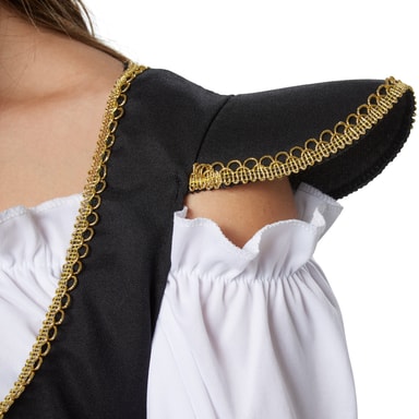 Damekostymet «Skottejente» består av et kort skjørt i vevet rutemønster med strikk. Den hvite blusen har rysjer på kragen og ermene, og har også strikk. Den svarte vesten er ermeløs, med lange skulderkapper. Hele sømkanten på vesten har en gullfarget bord. Kostymet avrundes av et svart belte med gullspenne, en matchende knestrømpe i tillegg til en lue med skotskrutete mønster og dusk, materiale: 100 % polyester.