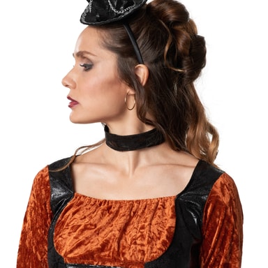 Damekostymet «Steampunk-prinsesse» består av et langt skjørt med rysjer. Den øvre delen er satt sammen av en langermet bluse av fløyel med kontrasterende ermer, og over den er en antydet vest i imitert lær med knapper. På ryggområdet finner man en glidelås. En avtagbar krage, en liten hatt med kjede og et dekorativt mønster som går rundt hele drakten, gjør kostymet komplett, materiale: 100 % polyester.
