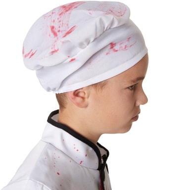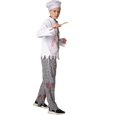 Guttekostymet nifs kokk består av en hvit kokkejakke med dobbelknepping og svart krage som går fra øverst til nederst midt i fronten. Har tilhørende bukse med svart-hvitt rutemønster. Buksen har linning med gummistrikk. Armene , sømmene på overdelen og buksekanten er frynsete. Kostymet leveres med tilhørende kokkelue med gummiinnsats og kokkeforkle med knyting. Alle delene i kokkekostymet har blodflekker, materiale: 100 % polyester.