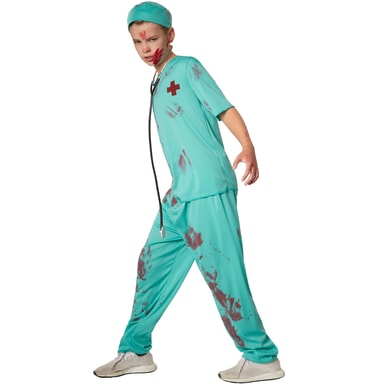 Guttekostymet nifs lege består av en kortermet skjorte med et påtrykt rødt kors på venstre bryst. Tilhørende bukse er i samme fargetone og har, i likhet med overdelen, blodflekker. Strikket i midjen holder buksen oppe. Legeluen, som følger med, har også flekker av blod og kompletterer kostymet, materiale: 100 % polyester.