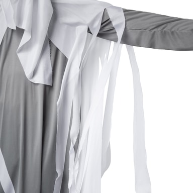 Herrekostymet skummelt spøkelse består av et fotlangt antrekk med lange ermer, maske samt hansker. På utsiden av antrekket er det festet lange strimler som er sydd fast til halslinningen. Selve halslinningen har et elastisk bånd.Les mer om produktet