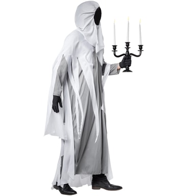 Hvem er den hemmelighetsfulle personen med kittel? Noen vil få frysninger ved synet av det skumle spøkelset: Hvite stoffstrimler, svarte hansker og der hvor ansiktet skulle ha vært, er... ingenting. Mens du selv forblir skjult, har du godt utsyn til omgivelsene. Gjør narrestreker i kostymet som skummelt spøkelse.