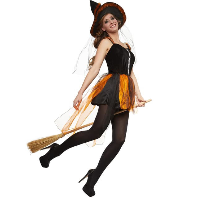 Den ville heksen Wilzania er full av lidenskap. Hun smitter alle med sin uimotståelige trolldom. Den tiltrekkende, svarte kostymen med dyp utringning og kort skjørt forsterker effekten. De oransje delene i tyll speiler energien hennes. Dagens hekser legger stor ekt på utseendet. Den ville heksen Wilzania er et flott blikkfang.