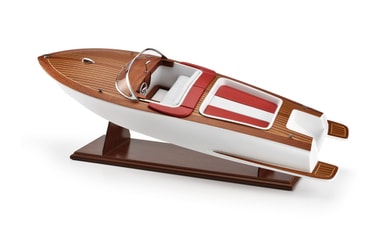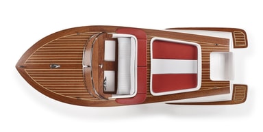 Byggesett med skrog i glassfiber og dekk i tre, seter i imitert skinn og diverse forkrommet detaljer. Modellen leveres som byggesett og kan motoriseres.