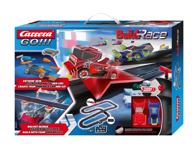 Analog bilbane i 1:43 skala med biler bestående av byggeklosser. Bilene og banene kan bruke andre produsenters byggeklosser for å gi bilene banen det designet du ønsker! Banedetaljer kan også bygges på (ikke inkludert). Banen kan bygges med to ulike konfigurasjoner. Byggeklosser er ikke inkludert i settet, kun biler og nødvendige banedeler.