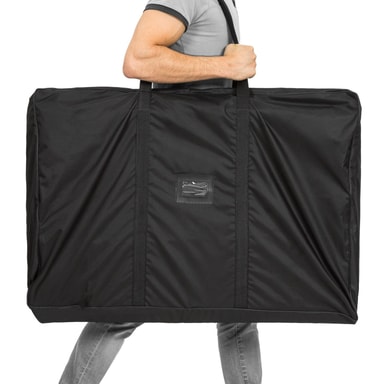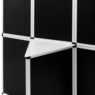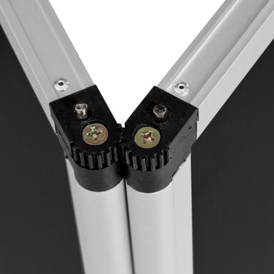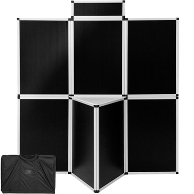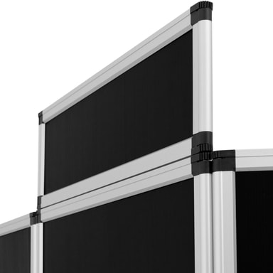 Posterveggen kan brukes fleksibelt som messevegg eller demonstrasjonsvegg. På veggen kan posteren enkelt festes - slik fungerer messeveggen som et stort demonstrasjonssystem. Dessuten inneholder det foldbare messedisplayet et bord der du kan stille ut produkter, prøver eller visittkort. Skilleveggen kan raskt monteres opp og ned og er lett å transportere.