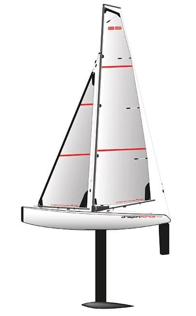 Joysway her med Dragon Force 65 V7. Båten har ett smalt og strømlinjeformet skrog og går fint i vannet. Båten kommer med ekstrudert karbonfibermast, bomrør og aluminiumskjøl med ballastpære i sinklegering. Settet leveres klart til seiling og krever kun montering . Radio og kompatibel mottaker er ikke inkludert, dette gjelder også batterier til mottakeren.