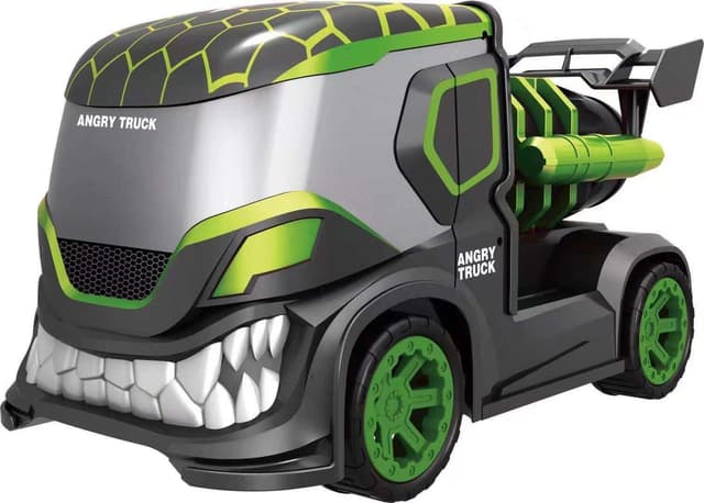 Angry Truck er en helt rå trailer med blinkende lys som styres fra kontrollen og røyk med lys som simulerer eksos bak. Bilen leveres komplett og klar ut av esken, lad batteriet med den medfølgende USB-laderen, sett inn 2 AA batterier (medfølger ikke), fyll på vann og du er klar til et forrykende show! Bilen er stillegående og enkelt å kjøre for barn.