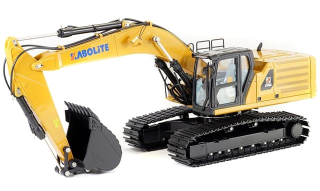 Spesifikasjoer * Ready To Run (Mangler kun 4stk AA-batteri til kontrollen) * 1x 7.4V 10.000mAh Li-Ion batteri (Ca. 40min kjøretid) * 1x Vegglader (Ca. 9 timer ladetid) * 24 ulike bevegelsesfunksjoner * 1x Radio m/10 kanaler og Touch-screen * Fullhydraulisk bom og skuffe * Girboks med Planet Gir * Børsteløsmotor * Skala-interiør * Metall-belter * LED-lys * Vekt: 9.2kg * Rekkevidde Radio: Ca. 80m * Dimensjoner: 75 x 51 x 19.2cm * Skala: 1/16