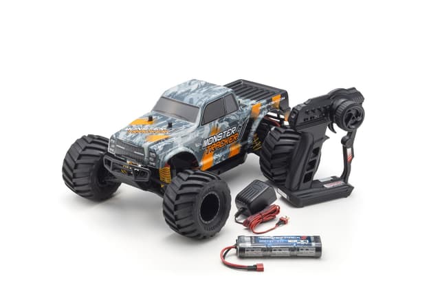 Flott monstertruck designet med nybegynnere i tankene, den er bygd opp slik at vedlikehold og rengjøring er enkelt. Den tar seg godt frem både on og off-road med store myke hjul. Monster tracker leveres ferdig montert, lakkert med batteri og lader det eneste du trenger i tillegg er 4aa batterier til fjernkontrollen.medfølgende batteri er et 7,2v 1800 mah nimh batteri med deans kontakt om ønskelig kan man bruke 2s lipo i bilen (husk å aktivere lipo-cutoff). Lipo batterier krever egnet lipo lader, se anbefalt tilbehør.