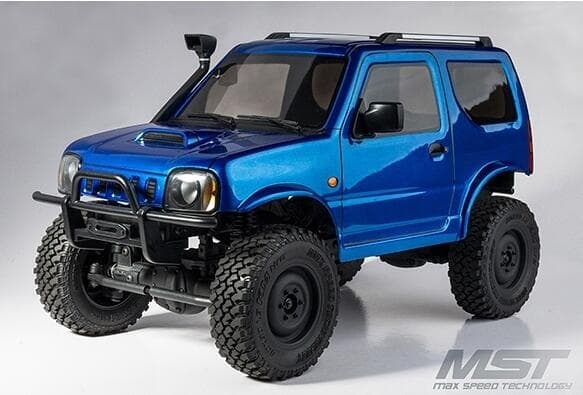MST CMX 1/10 RTR med blått J3-karosseri er en råtøff crawler med kult utseende. Bilen leveres ferdig bygget og med lakkert karosseri, det følger også med rattradio, men batteri(Deans-kontakt) og kompatibel lader må kjøpes i tillegg, se anbefalt tilbehør.