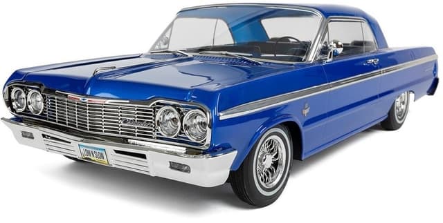 Heftig lowrider med detaljert klassisk 1964 Chevrolet Impala SS karosseri og ikke minst, servostyrt hoppende understell. Med naturtro felger, utstrakt bruk av krom, interiør og realistisk understell skiller denne bilen seg ut i mengden! Bilen leveres komplett med børstemotor, ESC med kraftig BEC, NiMh-batteri, USB-lader, 4 servoer og radio. Det eneste man trenger for å kjøre er 4AA-batteri til radio. Redcat Sixty-Four Sammen med ekte lowrider-folk og forskjellige entusiaster skapte RedCat denne skalariktige lowrideren og medfølgende 6-kanals radioen. Med radioen kan man styre bilen som normalt, men også heve og senke front og bakende uavhengig av hverandre. I settet medfølger det hele 4 servoer, èn som standard styreservo, èn 30kg til hopping og to 25kg til høydejustering bak. Denne varianten leveres med et dekalark kalt The Kandy n Chrome som har lekre linjer og ulike funky farger. Bilen er også klargjort for Redcat LED kit (RER13018, ikke inkludert).