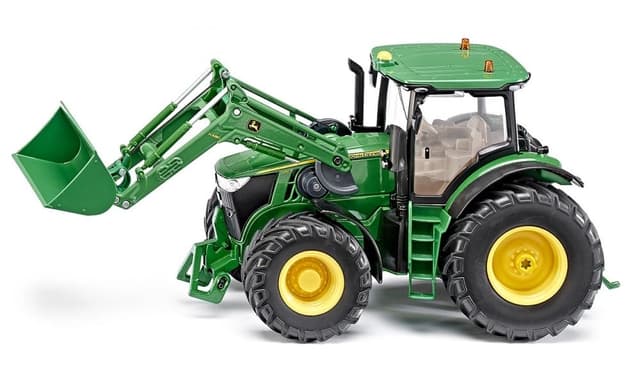En sjeldent gjennomført, detaljert og funksjonell radiostyrt traktor. Denne john deere 7r-modellen fra siku har fungerende frontlaster og en rekke spennende funksjoner. I tillegg kan det kobles til diverse hengere med ytterligere funksjoner.- 2.4g radiostyrt modell - proposjonal hanstighet - proposjonal styring - frontlys. Arbeidslys kan slås på - baklys - indikator/varsellamper - uavhengig tiltende frontlaster - løft/senkbar frontlaster - mulighet for parallell tilt, løft/senk frontlaster - radiostyrt hengerkobling - kompatibel med diverse hengere/utstyr (selges separat) - datainterface for ytterligere hengere/utstyr - 2 lysmønstre på varsellamper - avtagbar skuffe - 14-led lyssystem