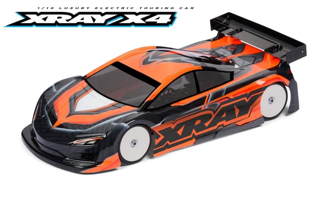 Xray X4 touring bil i 2023-utgave med bunnplate i aluminium. Mange endringer fra 2022-utgaven, hvor de største er nye dempere og dempertårn. Leveres som byggesett.