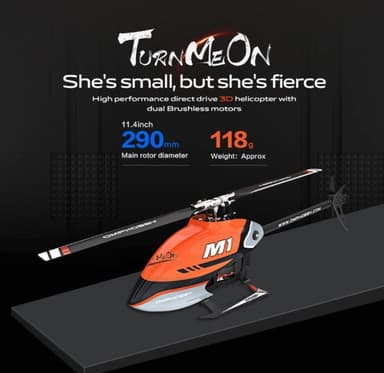 BNF Helipakke fra OMP Hobby. M1 er et micro helikopter som har arvet de samme rå egenskapene fra storebror M2. OMP M1 kommer i mindre skala og mer egnet for indoorbruk. Kommer ferdigbygget der det eneste du mangler er radio og eventuelt mottaker/satelitt. Dette er virkelig en heli med stabilitet og rå 3D-egenskaper i mikro forpakning! Gul versjon har gule motorer og gul dekor på blader og skid. Modellen leveres med innebygd SFHSS protokol som vil støtte en rekke Futaba radioer. M1 støtter også S-BUS og DSM/DSMX satelitter. Flyegenskaper M1 har kommer med diverse aluminiumsdeler. Helikopteret har mikro direktedrift til både hovedrotor og halerotor, dette begrenser bevegelige deler og sparer vekt. Helikopteret har meget god effekt og selv om halerotor er direktedrevet har man meget god kontroll på halen selv i 3D-øvelser. Tic-toc, hurricane og øvelser som piroflip eller chaos er mulig å utføre med kraftoverskudd. I tillegg er helikopteret meget stabilt selv for nybegynnere siden det er mange ulike flymoduser å velge mellom på flightcontrolleren.