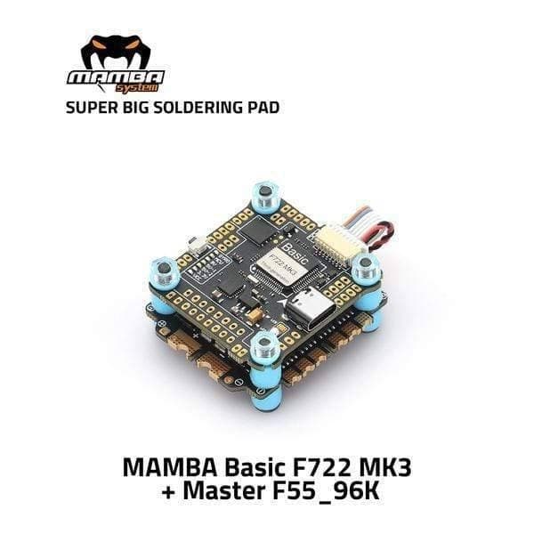 Stack med FC og ESC på 4x55 for 3-6s LiPo. Stacken har montering for 30.5mm (M3). Kommer med XT60-plugg, diverse ledninger, kondensator og dempeputer. Lodding kreves. Spesifikasjoner FC * MCU: 216MHz STM32F722 * Gyro: MPU6000 * Barometer: Ja * OSD: Ja * Uarts: 6Set * ESC Soft: Dshot300/600/1200 * LED Control: BF LED/MB LED (4 set 2812) * F.Port: Ja * RSSI: Ja * Buzz: Ja * Innspenning: 3-6S * BEC: 3.3V 0.5A& 5V 3A &?DJI?9V 3A