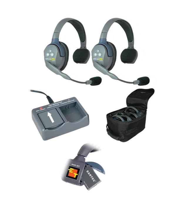 Eartec UltraLITE er et kommunikasjonsheadset som er veldig lett å bruke og har meget god samtalekvalitet. Leveres her 2stk i esken sammen med 220V lader, alt i en fin veske for oppbevaring. Kan brukes på høyre eller venstre øre, og mikrofonen deaktiveres når den vippes opp. Ca 6t driftstid og opp til 400m rekkevidde.