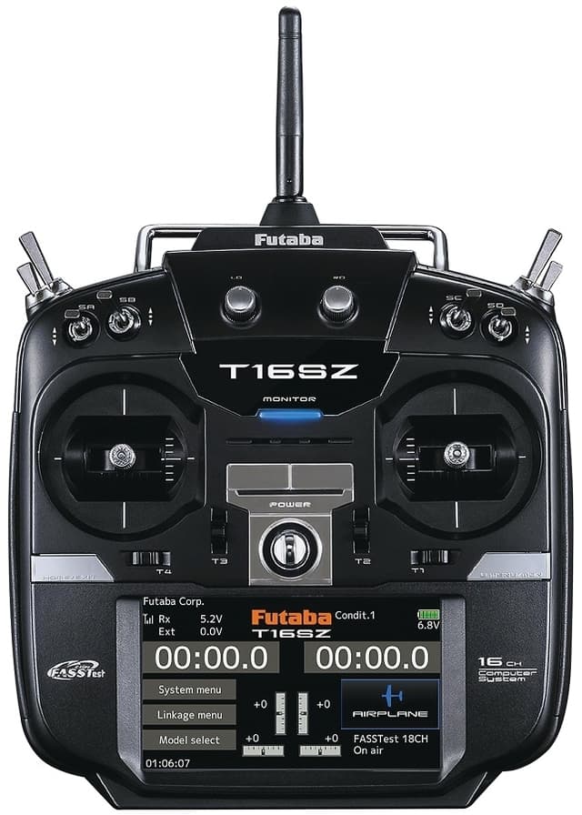 Futaba 16SZ, 16kanals computerradio i stilfullt design. Den store 4,3 LCD touch skjermen i farger er oversiktlig og brukervennlig. 16SZ er kompatibel med alle de populære protokollene som FASSTest, FASST, S-FHSS og T-FHSS. Leveres med en R7008SB mottaker og batteri.Dette følger med i eska: