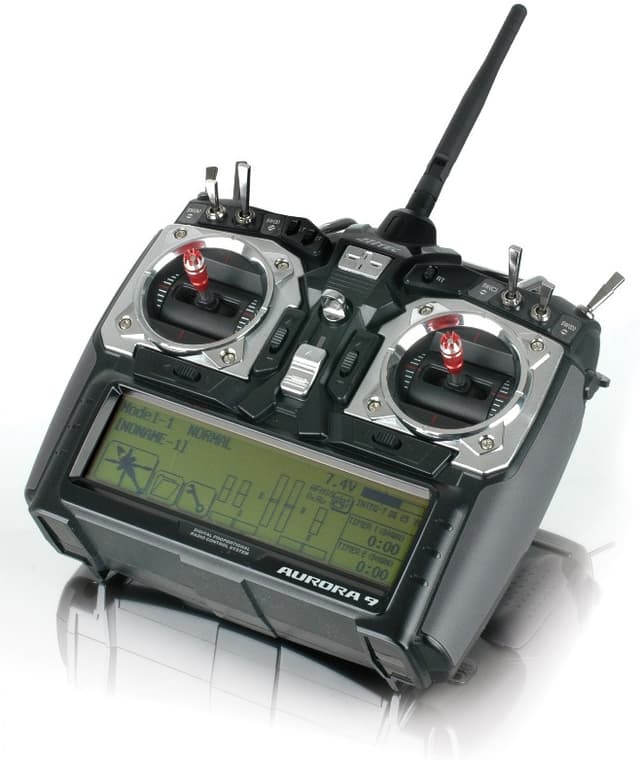 Hitec 2.4ghz radio med 9ch Optima 9 telemetri mottaker. Det følger med 1300mah oppladbart senderbatteri og lader, samt strømbryter. Radioen har 30 modellminner, programmerbare brytere, typevalg for Acro/Glider/Heli. Stikkene er stillbare i motstand og hvor hakkete de skal være fra baksiden av radioen via inspeksjonshull.Hitec is proud to introduce our new flagship radio the Aurora 9. The Aurora 9 is a “pure digital” 2.4GHz system offering an extremely low latency response time for that “connected” feeling. Featuring a large backlit 5.1 inch touch screen display, 30 Model memory, assignable switches and customizable programming menus, the Aurora is a true 3 in 1 radio with sophisticated programming for sail planes, helicopters and all kinds of power planes. With all these features and a price that can’t be beat, there is no doubt the Aurora 9 will become the radio of choice for the most sophisticated pilots.