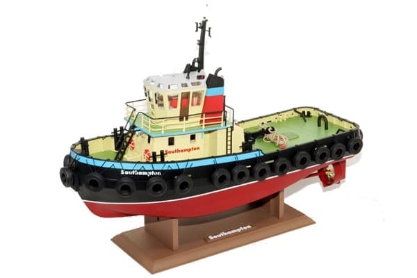 Southampton Tug Boat er en radiostyrt båt som bruker 2.4Ghz radiosystem. Båten er meget detaljert og har mange fine skaladetaljer. Modellen er utstyrt med ekte gummidekk som ligger som fendere rundt båten, dobble skalapropeller i metall og ror i metall. Modellen leveres komplett med unntak av 4AA batterier til fjernkontrollen.I pakken finner du selve båten ferdig montert med 2 motorer, regulator, fjernkontroll, krybbe til båten, oppladbart batteri og lader.