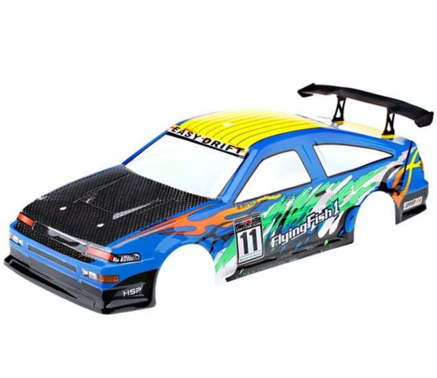 Karosseriet leveres ferdig lakkert og med medfølgende dekalark som kan klistres etter ønske. Karosseriet er tilpasset HSP 1:10 onroad og drift-biler, men passer også en rekke andre 1:10 biler.