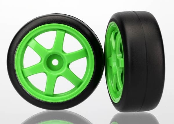 Tires and wheels, assembled, glued (Volk Racing TE37 green wheels, 1.9 Gymkhana slick tires) (2)