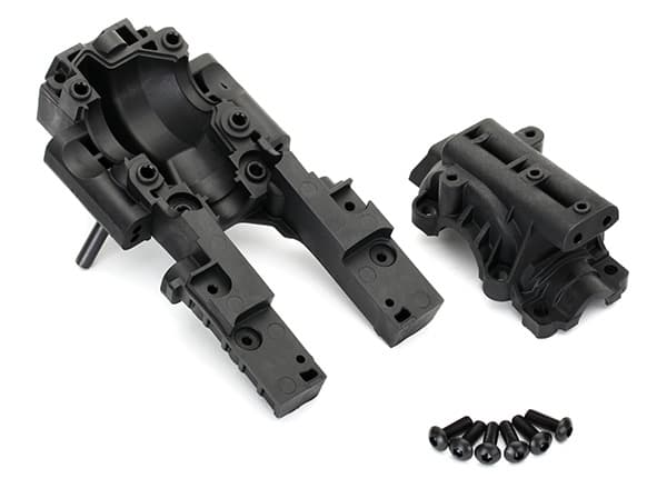 TRX-8630 Bulkhead Upper and Lower (front) (black) krever å bli brukt på chassis: TRX: 8622. Pakken inneholder 6stk 4x12mm festeskruer.Les mer om produktet