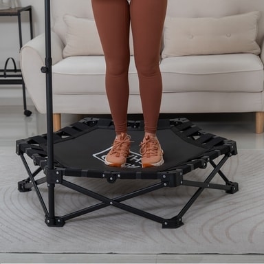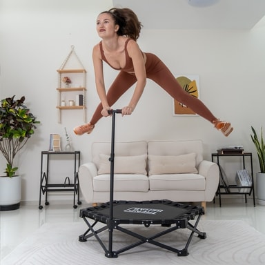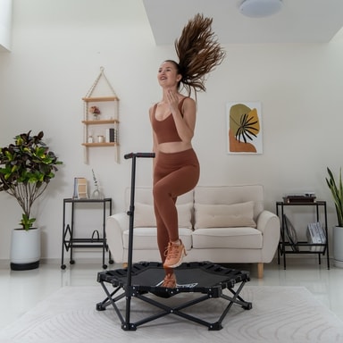 Trampolinen som tar treningen din til neste nivå! Bare 7 kg lett og kan foldes ut på 10 sekunder – helt uten verktøy. Perfekt for både nybegynnere og erfarne som vil aktivere hele kroppen, hvor som helst og når som helst. Trening på trampoline, såkalt rebounding, er skånsomt for leddene og forbedrer kondisjon, balanse, lymfesirkulasjon og kjernestyrke. Hoppingen aktiverer over 400 muskler på en naturlig og morsom måte. Fordeler: ultralett, portabel, stabil, sklisikker og stillegående. Passer både til rolige økter og pulshevende trening. Enkelhet møter effektivitet – hopp i gang i dag!