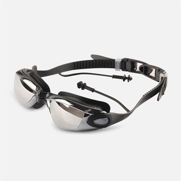 Tåkefrie svømmebriller for voksne med eksklusive elektropletterte HD glass i pol.ykarbonat og myke vanntette silikonpakninger Perfekt når du vil ha full sjekk under vannet men slippe irriterende øyne som svir. Det justerbare hodebåndet med spenne holder svømmebrillene trygt og behagelig på plass under vannet og de integrerte øreproppene forhindrer at du får vann i hørselgangene. Innsiden av svømmebrillene har et anti-tåke belegg.