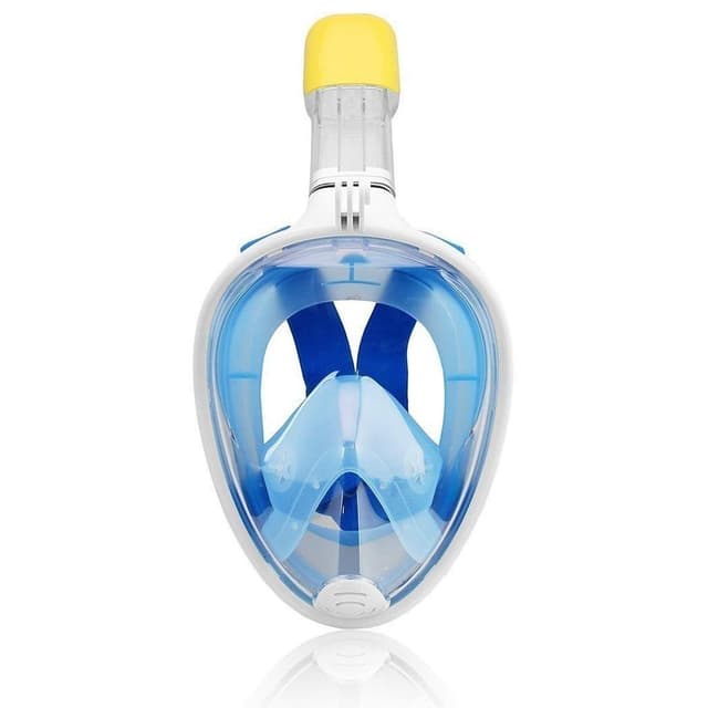 Dykkermaske med snorkel som dekker hele ansiktet og har separate inhalasjons- og utåndingskanaler, noe som gjør masken helt ugjennomtrengelig for vann. Det herdede glasset gir deg 180 graders utsyn, og med GoPro-braketten kan du ta opp dykkereventyrene dine for senere å dele med venner og bekjente.