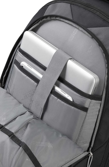 - Bær din bærbare PC med deg hvor enn du går med American Tourister Fast Router ryggsekk med lomme for 15,6" bærbar PC, USB-port for lading og et uttrekkbart håndtak. Den har også lommer i front og et stort hovedrom.Les mer om produktet