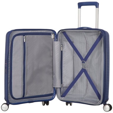 Kryssstropper i både topp- og bunnrom, TSA-lås på alle størrelser og doble hjul for smidig rulling.