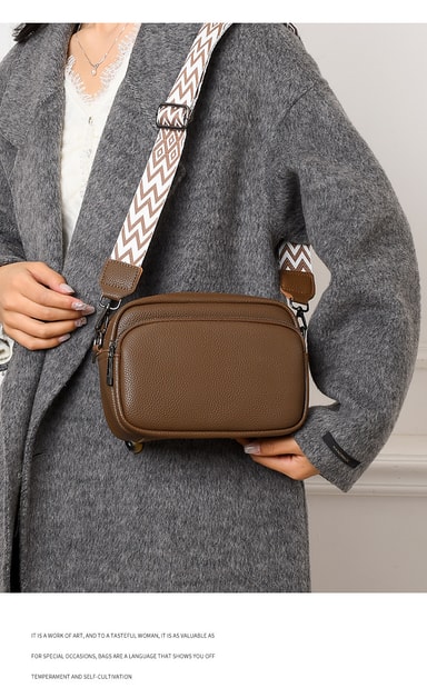 Bred skulderstropp: Vesken har en bred skulderstropp, som sikrer komfort under langvarig bruk og gir en stilig touch til ensemblet ditt. Designet som en crossbody-veske med én skulder, gir den enkel tilgang samtidig som den tilbyr fleksibiliteten til å bære den komfortabelt over skulderen.