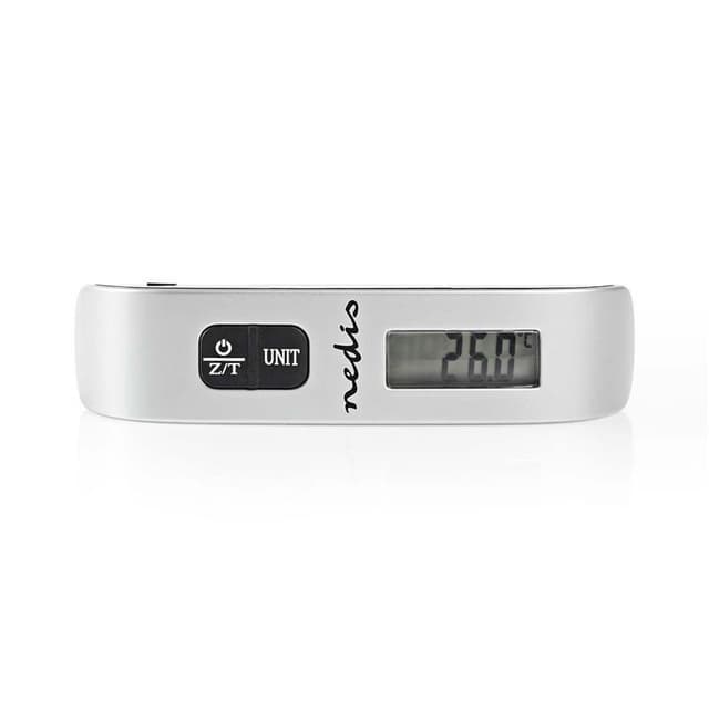 Kompakt bagasjevekt for å unngå at du tar med for mye bagasje til flyplassen. Den viser en advarsel hvis vekten overstiger den tillatte verdien 50 kg / 110 pund, og har en nullstillings- og kalibreringsfunksjon som nullstiller vektene. I tillegg viser de romtemperaturen i grader Celsius og Fahrenheit.