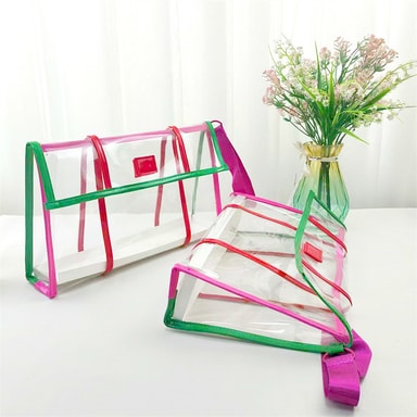 Krystallklar Synlighet: Det transparente PVC-materialet lar deg enkelt se innholdet i vesken uten å måtte rote gjennom den. Dette er spesielt nyttig når du er på reise eller trenger å raskt finne en spesifikk gjenstand. Den klare designen gjør det også enkelt å identifisere søl eller lekkasjer, slik at du raskt kan rengjøre dem og forhindre skade på andre eiendeler. Denne funksjonen sparer deg for tid og frustrasjon, og sikrer en jevn og organisert opplevelse.