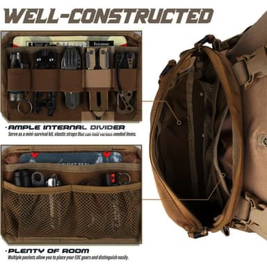 Romslig oppbevaringskapasitet: Tasken har flere rom i forskjellige størrelser, noe som gir god plass til å organisere og bære viktig utstyr. Fra mobiltelefon og lommebok til jaktutstyr, verktøy og diverse tilbehør.