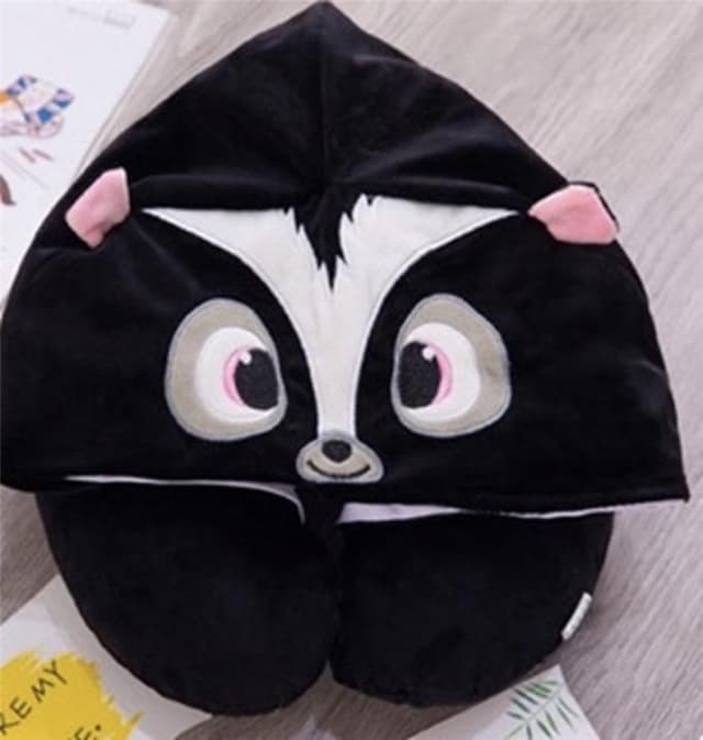 Denne modellen har også en hette i form av et søtt stinkdyr som du kan trekke over hodet for å stenge ute all støyen rundt deg.