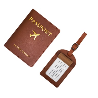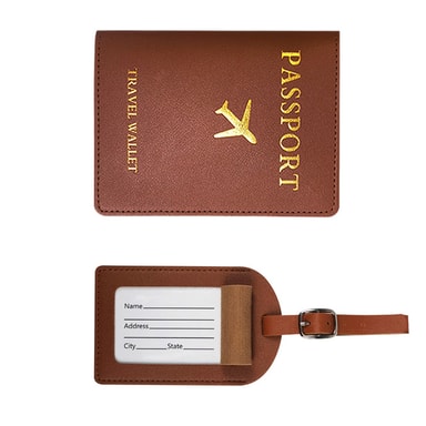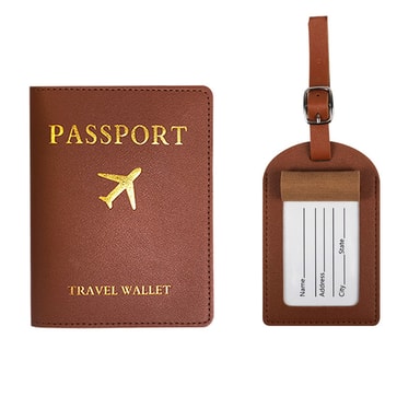 Passholder og bagasjemerkesett - Stilig reisetilbehør Brun