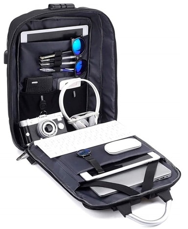 Smidig kabinryggsekk med kodelås og USB-lader. Vesken har et håndtak som gjør den enkel å feste på din reiseveske. Takk være det smarte kodelåset er vesken vanskelig å komme inn i, i tillegg avskrekker det trolig også de fleste tyver.