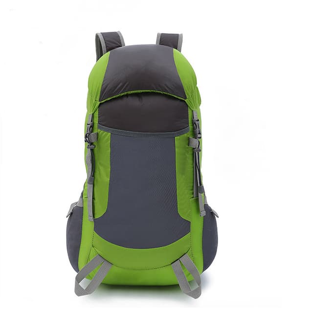 Ryggsekken er laget av vanntett nylonmateriale, ultralett og rivebestandig. Praktisk å brette sammen i koffert, lommebok eller bilgarasje. Gi nok plass for korte reiser, camping, fotturer.