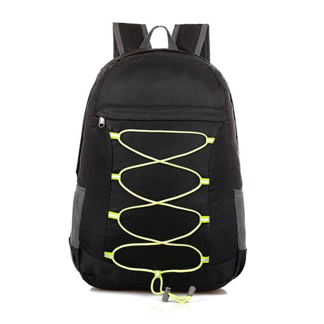 Ryggsekken er laget av vanntett nylonmateriale, ultralett og rivebestandig. Praktisk å brette sammen i koffert, lommebok eller bilgarasje. Gi nok plass til korte reiser, camping, fotturer.