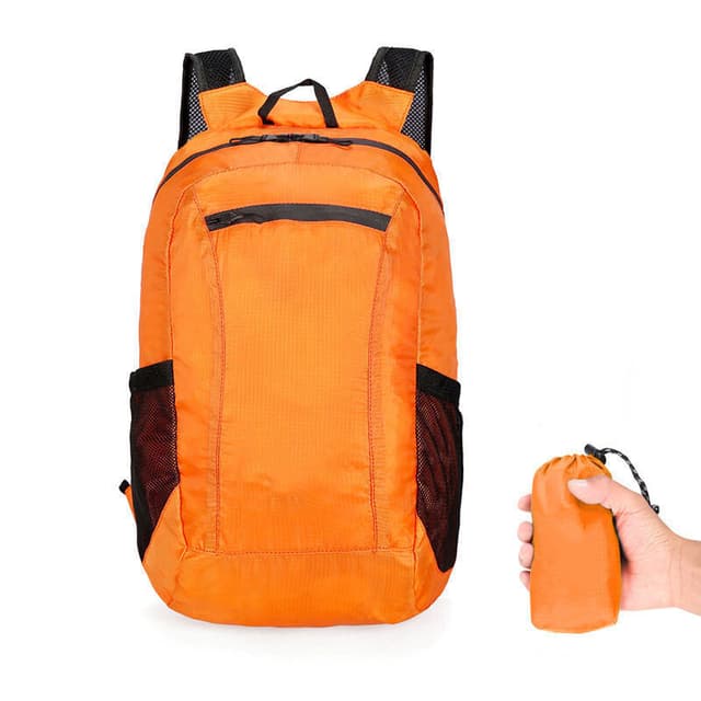 Ryggsekken er laget av vanntett polyestermateriale, ultralett og rivebestandig. Praktisk å brette sammen i koffert, lommebok eller bilgarasje. Gi nok plass til utendørs reiser, camping, fotturer.