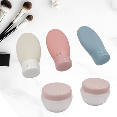 Enkel å fylle: Flaskene og glassene er lekkasjesikre og laget av slitesterke, BPA-frie materialer. Kompakt størrelse og lett å pakke. Inkludert trakt og spatel for enkelt å fylle reisesettet.