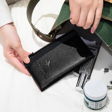 Stor kapasitet: Denne passlommeboken har 11 dedikerte rom for å holde reiseartiklene dine organisert. Den inkluderer 4 kortspor, 1 fotospor, 2 passpor, 1 billettspor, 2 SIM-kortspor og en lomme med glidelås.